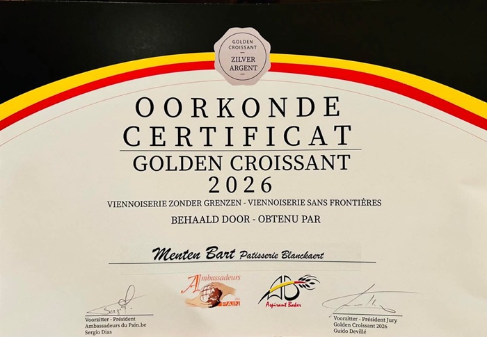 Patisserie Blanckaert heeft zilver behaald tijdens de uitreiking van de Golden Croissant 2026