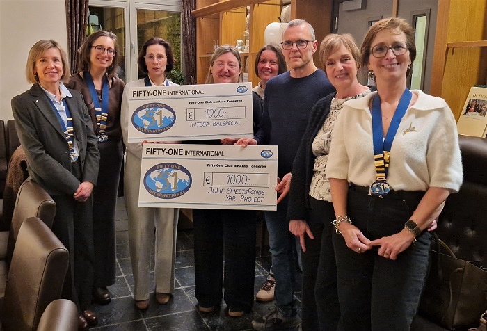 Vanavond hebben de dames van 51 amaTae Tongeren weer enkele goede doelen gesteund. In de Infirmerien schonken ze 1.000 euro aan Intesa en ook 1.000 euro aa, het Julie Smeetsfonds.