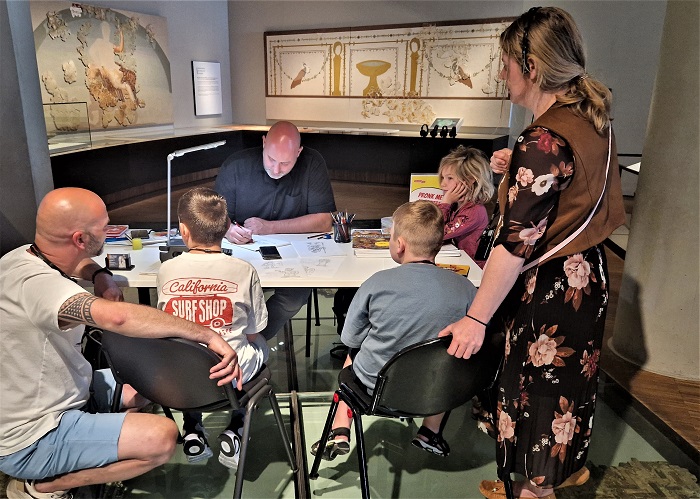 Ze leggen de museumgasten vast in een Romeinse cartoon. Bezoekers kiezen zelf het personage waarin ze zich willen laten afbeelden: een Romeinse politicus, matrona, legionair, ambachtsman, … Ze krijgen de unieke tekening ook mee naar huis.