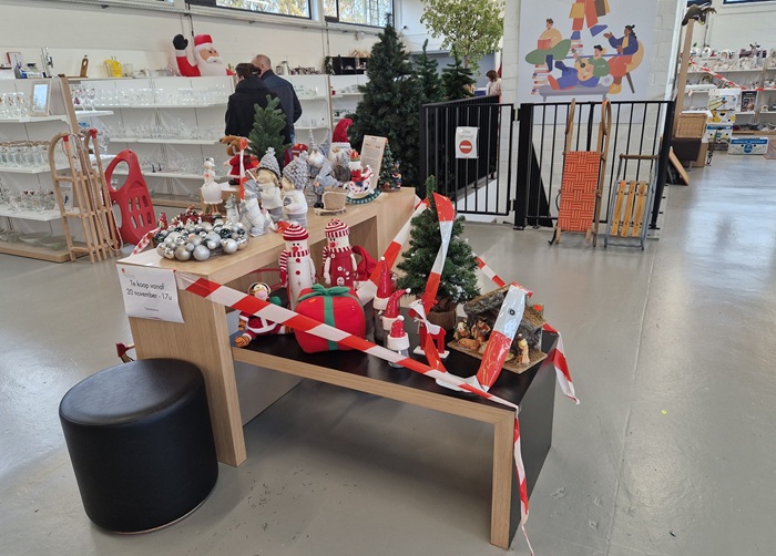 Vanaf 17u kan je komen kiezen uit een massa kerstartikelen en kunststof kerstbomen