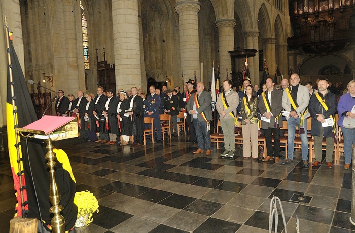 de burgemeester, schepenen en raadsleden; de vertegenwoordigers van de Rechterlijke Macht; de Militaire Overheid; Politie en Brandweer en de Vaderlandslievende Verenigingen die vertegenwoordigd waren door 14 vaandeldragers uit Tongeren en Borgloon. (foto Jos Collaer)
