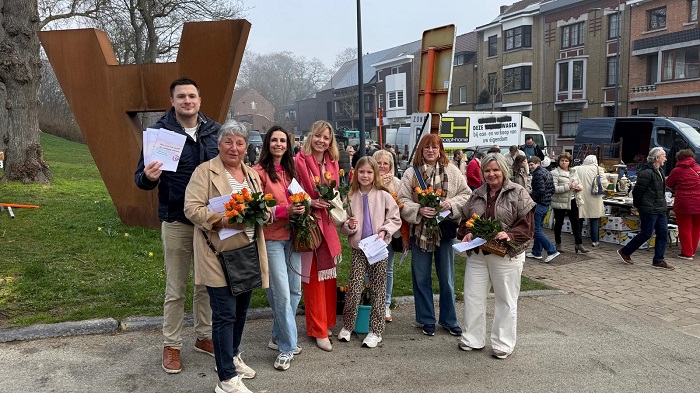Naar aanleiding van Internationale Vrouwendag deelde CD&V zondagochtend oranje rozen uit op de antiekmarkt. Met de actie wilden ze vrouwen in de bloemetjes zetten én aandacht vragen voor de pensioenkloof tussen mannen en vrouwen. Bezoekers kregen een roos en informatie over de positie van vrouwen in het pensioendebat.