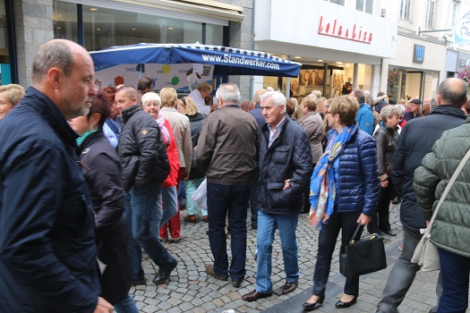 Vandaag is het weer Tongeren Foor met marktkraampjes van op de Grote Markt tot onderaan de Stationslaan. De weersvoorspelling heeft heel wat mensen afgeschrikt. Hierdoor ligt de publieke opkomst wat lager. Op de hoek van de Kloosterstraat kan je een bloem kopen t.v.v. de straatversiering n.a.v. de Kroning. Bij café In De Klok is het aanschuiven voor een morelle bier.