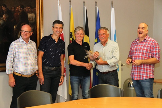 Het schepencollege heeft ontvangen voor zijn mooie prestatie. De globetrotter ontving een fles champagne en 500 euro voor 'Kom op tegen kanker'.