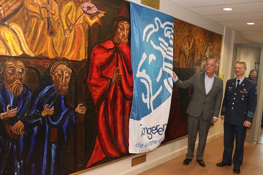 Ook Kolonel Briers, Commandant van het CRC Glons, bevestigt dit: ‘Het is normaal dat legeronderdelen een peterschap aanvragen in de stad of gemeente waar ze gehuisvest zijn. Voor het CRC was dat dus logischerwijze de stad Tongeren. Met ons vertrek naar Bevekom willen we echter de jarenlange zeer mooie en geapprecieerde samenwerking en traditie niet vergeten. Net daarom hebben we dan ook gevraagd om te gaan voor een vernieuwing, een herbevestiging, van dit peterschap na de verhuis van onze eenheid op het einde van dit jaar. Om deze daadkracht bij te zetten hebben we dan ook beslist om een heel bijzonder schilderij, dat eerst in de Mess Officieren van de Ambiorix Kazerne hing en daarna in het CRC, te overhandigen aan de stad Tongeren. Het schilderij symboliseert de schenking van stadsrechten door Luik aan de stad Tongeren in de dertiende eeuw. Het is een kunstwerk van de hand van André Toetenel en heeft een niet geringe omvang van ongeveer 5 m op 2 m. We zijn dan ook zeer fier om te mogen vaststellen dat de stad Tongeren dit geschenk aanvaard heeft en zal tentoonstellen in het Praetorium op de derde verdieping!