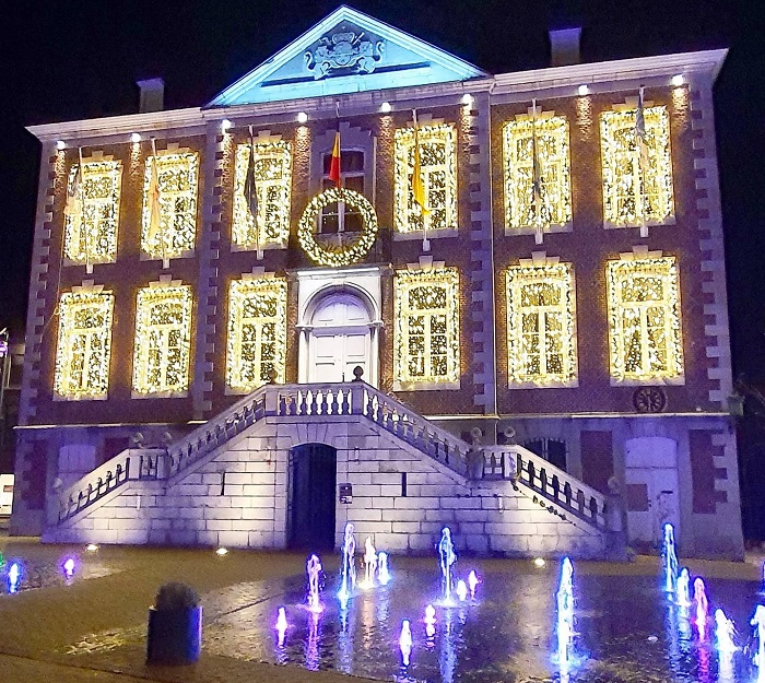 Het stadhuis is al enkele dagen versierd met kerstlichtjes (foto: PP Custers)
