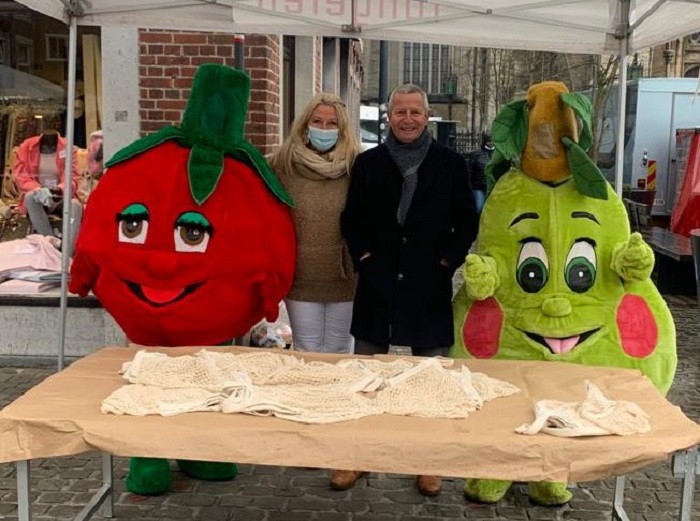 “Door de herbruikbare groenten- en fruittas te gebruiken voorkom je dat er nog meer plastic tassen in het milieu terechtkomen. Ze bieden ook heel wat voordelen. Zo zijn ze licht, duurzaam en rekbaar. Bovendien zijn ze milieuvriendelijk en volledig afbreekbaar. Een perfecte vervanger dus voor je plastic of papieren tasje. De tasjes zijn gemaakt van 100% natuurlijk katoen en vrij van chemische stoffen,” besluit Patrick Jans, schepen van Milieu. Hij liet zich vergezellen door een tomaat en een peer.