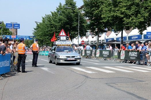 De renners zijn zonet een eerste keer gepasseerd aan de finish op de Eeuwfeestwal. Ze moeten nu nog 3 plaatselijke rondes van 21,9 km afleggen.