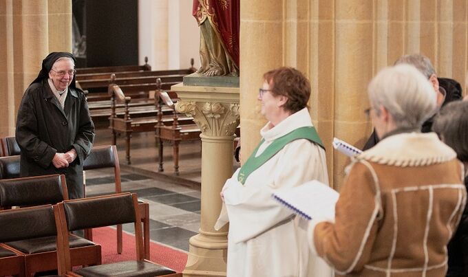 Na de viering werd er gezongen voor een lid van onze kerkgemeenschap, zuster Gratia Coemans. Dinsdag zal zij 90 kaarsjes mogen uitblazen.