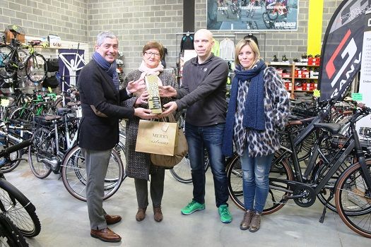Germaine Jans (67) uit Tongeren is de derde weekwinnaar van de actie: 'Win een eindejaarsbudget met je Ambi.pas'. Het levert haar 10.000 extra punten, goed voor 1.000 euro shopplezier op. De uitreiking vond plaats bij fietshandel 'Marco's Vélo Shop' (Wijkstraat). Germaine kocht er zaterdag een fietslicht als kerstgeschenk voor haar zoon.