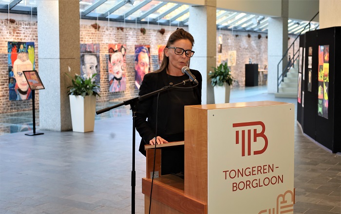 Burgemeester Jo Feytons: "Ik vond dat ik hier moest aanwezig zijn. Ik heb zelf heel hard geleefd in de jaren '90. Het is de tijd van mijn eerste echte job. Ik ben toen gehuwd en de kinderen zijn geboren. Is dat al allemaal zo lang geleden? Het was een heel mooie tijd! Jullie hebben allemaal bepaalde talenten. Jullie zijn vrij om te doen en te denken. Het zijn prachtige werken, waar hart en ziel zijn ingestoken en met een heel verhaal erachter. Ik kom zeker nog eens terug. Kunst verbindt. Kunst leeft. Kunst heeft bepaalde kracht. Doe allemaal zo voort!"