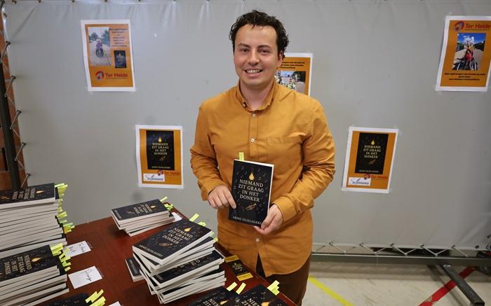 Arno Olislagers (29) uit Piringen schreef zijn allereerste roman: 'Niemand zit graag in het donker'. Hij werkt als opvoeder bij ter Heide en baseerde zich op zijn werk voor deze debuutroman: "Hoofdfiguur Jelle is een fictief persoon met een zware beperking. Hij is een verbitterd man die zich pas na 20 jaar wil uitdrukken. Ik ben al van jongsaf geïnteresseerd in schrijven. Na de humaniora heb ik 'Film & televisie' gestudeerd., maar dat is een heel onzekere sector. Dan heb ik een opleiding 'Literair schrijven gevolgd aan de Academie in Hasselt. Pas in het derde jaar is het concrete idee voor deze roman ontstaan. Het boek is mijn eindwerk dat ik gebaseerd heb op mijn werk.