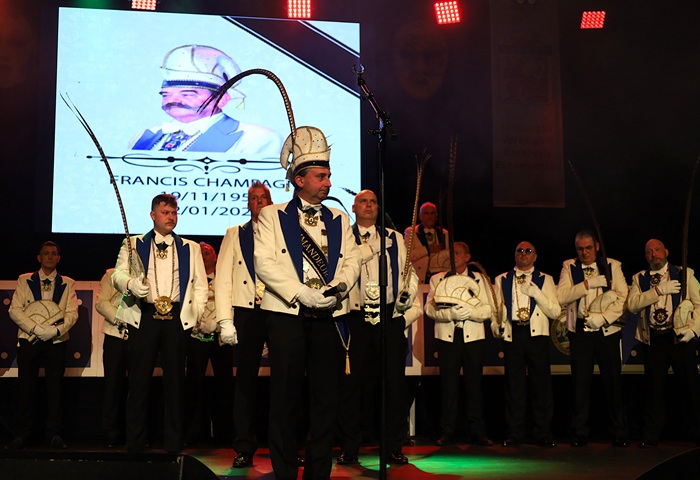 De Ridders van Morepoit tot Bukeberg mogen hun intrede maken. Ze verschijnen met 27 op het podium. Op de achtergrond wordt een foto van Francis Champagne geprojecteerd. Hij overleed onlangs op 71-jarige leeftijd