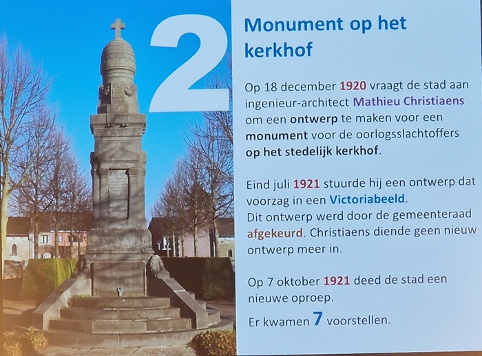Vanavond heeft stadsgids Paul Denis een lezing gegeven over het Monument der Gesneuvelden dat 100 jaar geleden op de Graanmarkt is ingehuldigd. De lezing werd georganiseerd door het KLGOG en het Davidsfonds.