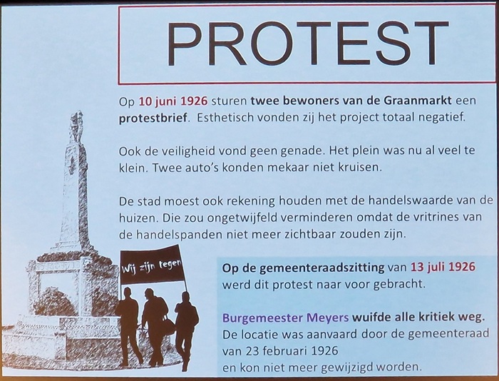 Tot slot ook van twee buurtbewoners, maar burgemeester Meyers wuift alle kritiek weg en de gemeenteraad keurt de locatie op de Graanmarkt goed tijdens de zitting van 23 februari 1926.