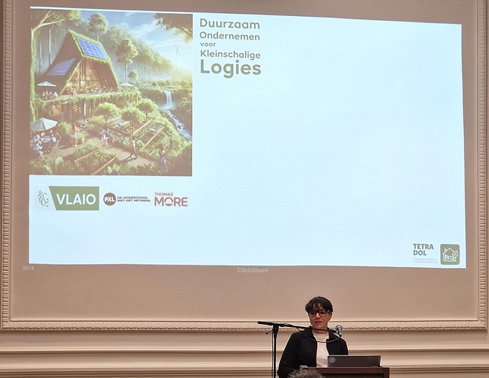 Gastspreker Nele Dubois (onderzoeker aan de PXL) gaf een toelichting over 'Duurzaam ondernemen voor kleinschalige logies'