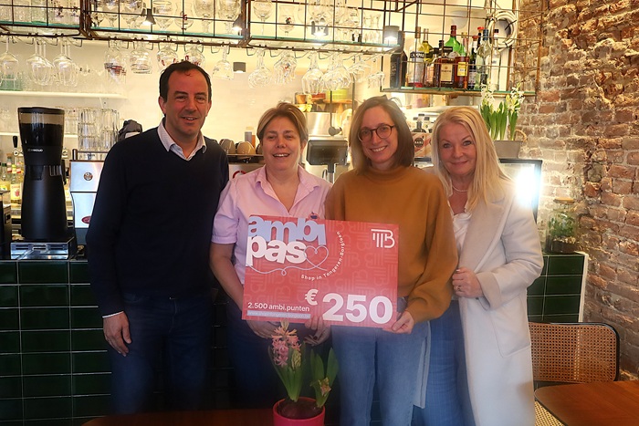 Karlijn Lowel (39) uit Zammelen is de weekwinnaar dankzij haar geregistreerde Amb.pas. Dat levert haar 2.500 punten, goed voor 250 euro op. De uitreiking vond al voor de 3e keer plaats bij Bar Boulevaer (Grote Markt). Karlijn gaat er regelmatig lunchen. Ze werkt in de buurt, bij apotheek 'Forum' (Grote Markt).