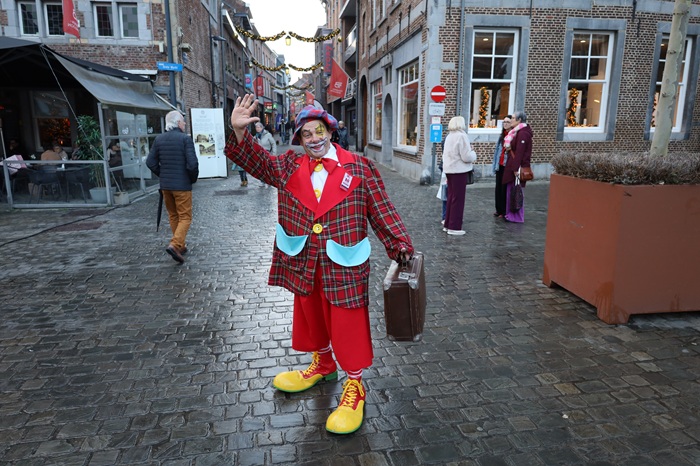 Er liep een clown door het centrum om de kinderen de weg naar het stadhuis te tonen. Omdat clown Titof ziek is, laat hij zich vervangen door clown Tofti.