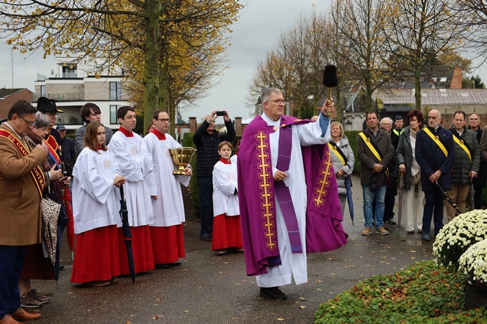 Op het kerkhof zorgde diaken Paul Gielen voor de zegening: "Allerheiligen is de dag dat we de doden nooit vergeten. We herdenken wat zij voor ons betekend hebben en al het goede dat zij voor ons gedaan hebben".