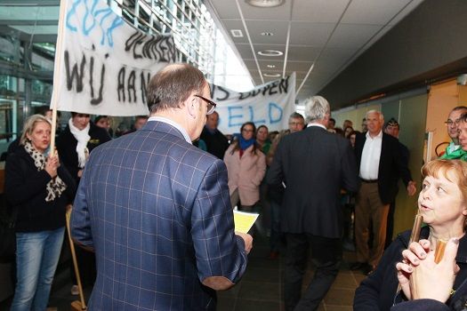 Een groep PWA-ers heeft vanavond actie gevoerd tegen de nakende privatisering van het dienstenchequesbedrijf To Do. Zo'n 80 poetsdames is vóór aanvang van de gemeenteraad de vloer komen vegen in het Praetorium. Ze waren uitgedost met keerborstels en ratels. Op spandoeken stond te lezen: ‘Mens boven geld, ‘Wij zijn gejost’ en ‘In 2018 denken we aan u’. Korpschef Tony Verlackt hield samen met een handvol agenten de wacht. PWA-voorzitter Jos Schouterden heeft een delegatie ontvangen in een zaaltje op de derde verdieping: “Het is niet de stad die de vzw PWA/To Do beheert. De gemeenteraad, noch het schepencollege is bevoegd in deze aangelegenheid. We dragen wel dezelfde bezorgdheid. We zoeken naar een goede oplossing. In 2014 draaide de vzw een verlies van 175.000 euro. Zonder maatregelen zal de onderneming op termijn de boeken moeten neerleggen. Daarom zijn er ernstige maatregelen nodig”, wist Schouterden.![]()