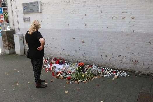De bloemen en kaarsen zijn ondertussen overgebracht van het Stadhuisplein naar het plein vóór het Praetorium.